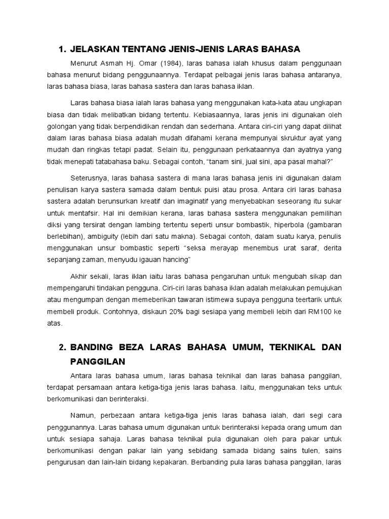 Dalam contoh i penggunaan laras bahasa sastera dari. Laras dianggap oleh ahli linguistik sebagai salah satu daripada variasi bahasa. 6ARAHAN DAN PERTANYAAN CIRI-CIRI LARAS BAHASA SAINS.